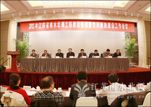 2月1日,省南水北調辦、江蘇水源公司在南京召開2013年南水北調工程建設管理暨黨風廉政建設工作會議,傳達貫徹省南水北調工程建設領導小組會議和國務院南水北調辦公室工程建設工作會議精神,總結我省2012年南水北調工程建設情況,部署2013年工程建設管理和黨風廉政建設工作,動員起來,真抓實干,確保工程建成通水,確保水質穩定達標,確保運行安全可靠。省水利廳廳長、南水北調辦主任呂振霖,省水利廳黨組成員、南水北調辦副主任張勁松出席會議并講話,江蘇水源公司董事長、總經理鄧東升作工作報告,省紀委省監察廳派駐江蘇南水北調工程紀檢監察工作組組長任曉明對黨風廉政建設提出要求。江蘇水源公司副總經理榮迎春主持會議,副總經理劉軍、總工馮旭松,南水北調工程江蘇質量監督站站長黃海田出席會議。