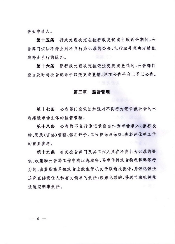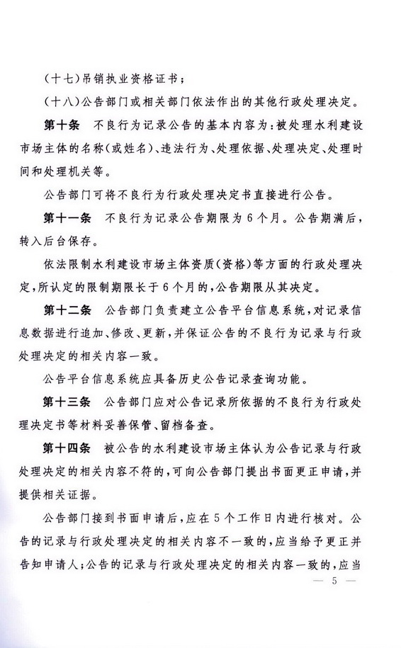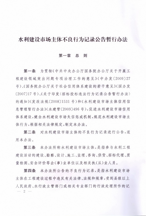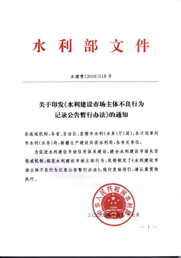 水利建設市場主體不良行為記錄公告暫行辦法