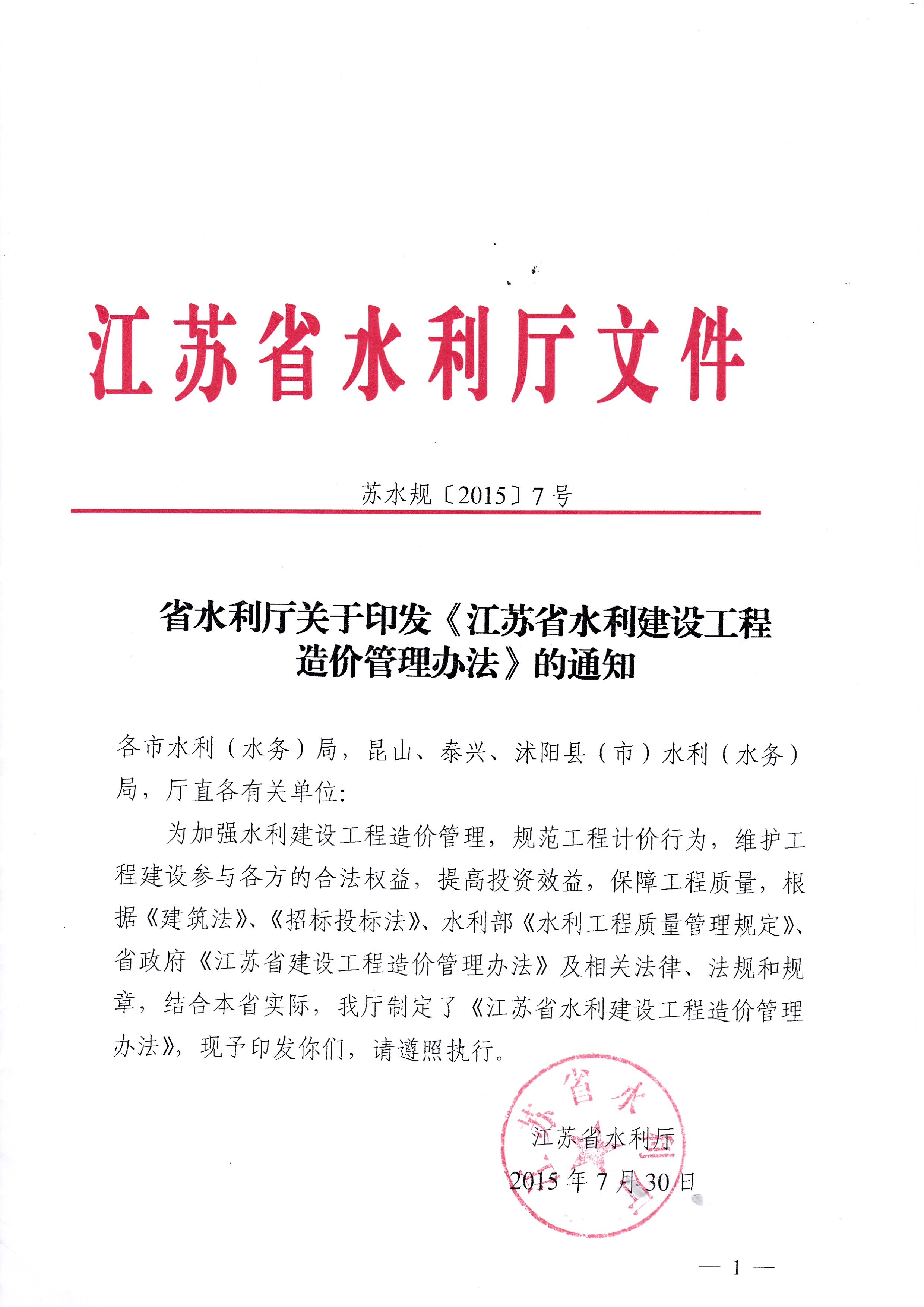 省水利廳關于印發《江蘇省水利建設工程造價管理辦法》的通知