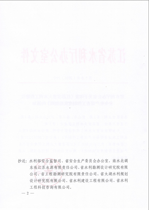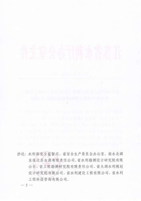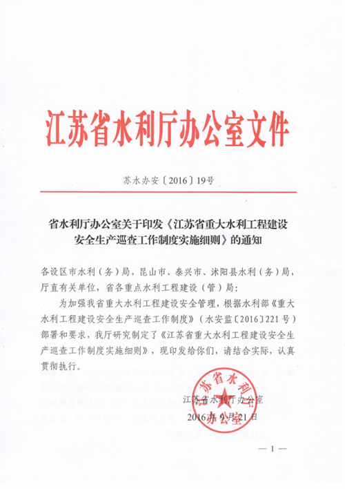 省水利廳辦公室關于印發《江蘇省重大水利工程建設安全生產巡查工作制度實施細則》的通知