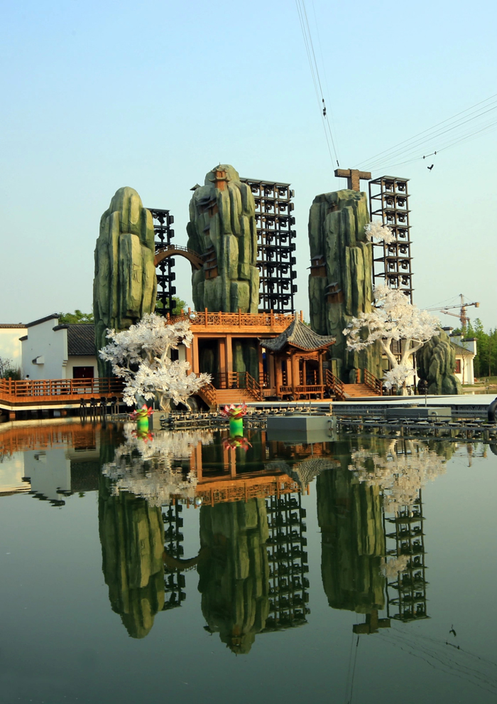 工程于2013328正式開工,在全體參建人員的共同努力下,于2014420交付使用。428,以中國四大民間傳說之一的《白蛇傳》為藍本,以金山寺為背景,金山湖水面為舞臺,大型3D水景秀《白蛇傳》在本工程成功首演。本工程的各項設施運轉正常,質量良好,為保證演出成功奠定了堅實的基礎。