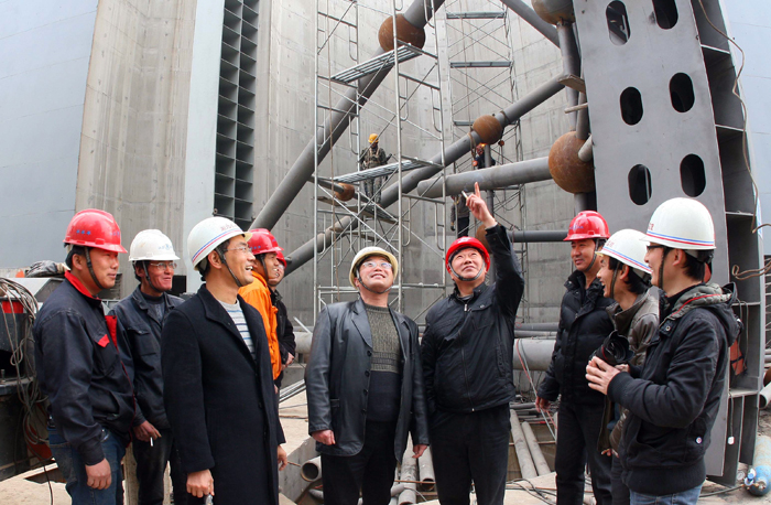 本站訊,由水機公司承建的湖北引江濟漢通航項目龍洲垸船閘金屬結構制作與安裝工程,日前閘門吊裝成功,順利進入下一階段施工。該工程閘門采用球節點弧形三角門,門高19.5米,為亞洲之最。針對工程工期緊、技術要求高、施工難度大、運輸距離遠等特點,水機公司副總經理劉銀生帶領一批精兵強將遠赴湖北荊州,組建了現場項目部,抓進度控制,重質量管理,確保按期實現各節點目標。在建設指揮部組織的第一季度綜合考核中,項目部被評為第一名,劉銀生同志被評為優秀項目經理。