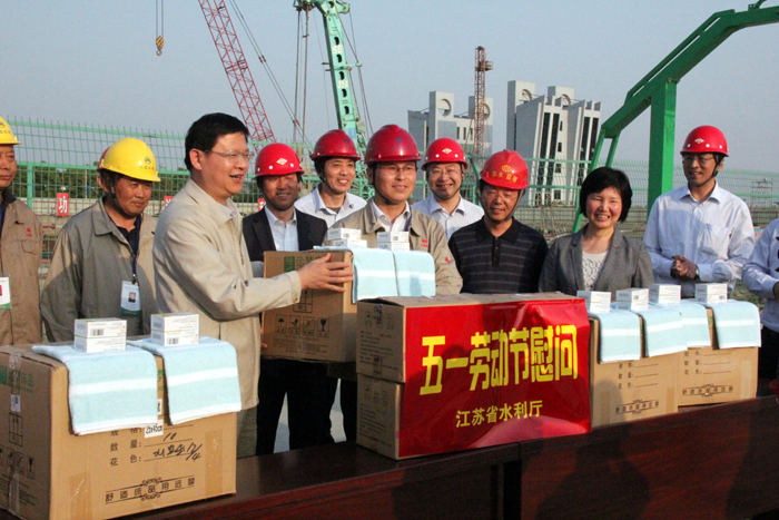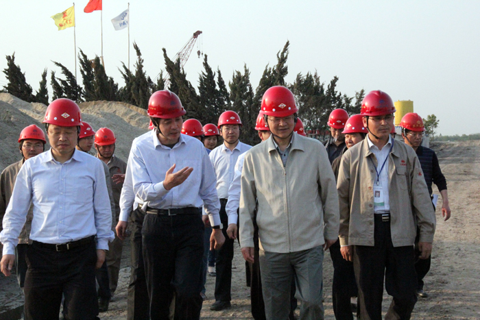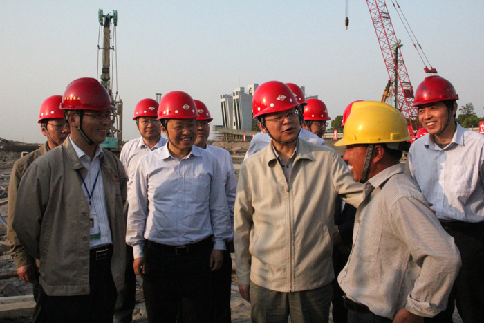 李亞平來(lái)到正在施工的引江河二期工程船閘施工現(xiàn)場(chǎng),實(shí)地察看工程建設(shè)情況,與正在施工的工人們親切交談,詳細(xì)的詢問(wèn)了他們的工作、生活情況。李亞平勉勵(lì)大家要鼓足干勁,爭(zhēng)取又快又好地完成引江河二期工程建設(shè)任務(wù)。