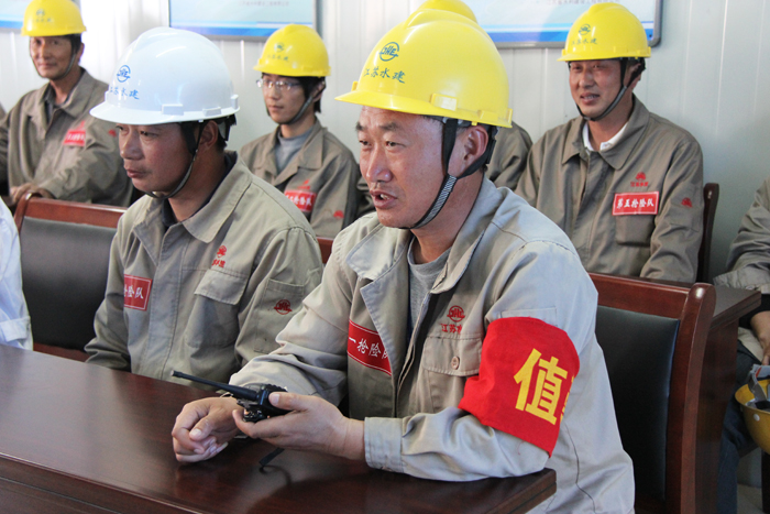 演練前,項目經(jīng)理顧明如檢查了防汛領(lǐng)導小組成員及演練人員到位情況、應急救援物資存放及設備完好情況;項目部技術(shù)負責人對防汛預案進行了解說,項目部副經(jīng)理王天榮就應急預案的啟動條件作了說明。14時,以“長江水位接近下閘首圍堰頂高層”為假想的演練活動拉開序幕。項目部接到泰州引江河第二期工程建設局防汛領(lǐng)導小組訊情通知后,防汛小組組長、應急預案總指揮、項目經(jīng)理顧明如第一時間啟動防汛應急救援預案,發(fā)布搶險命令,組織開展搶險。副經(jīng)理王天榮立即開展現(xiàn)場組織,緊張有序地落實各項搶險救援措施。5個防汛搶險隊分工明確,各部門配合默契,搶險物資齊備到位,施救組織有效得力。58分鐘后,應急防汛搶險演練完成了演練程序,取得了良好的效果。