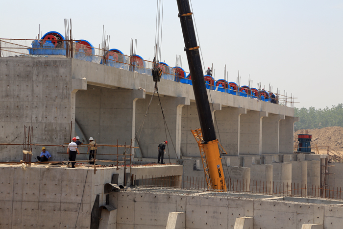雖然工程進展較快,但工程質量一點也沒有馬虎。記者從現場看到,整個工程混凝土表面線條流暢,平整清澈,色澤柔和;閘門焊縫飽滿,啟閉機就位精準。據記者了解,目前工程自復評的單元優良率在90%以上。
