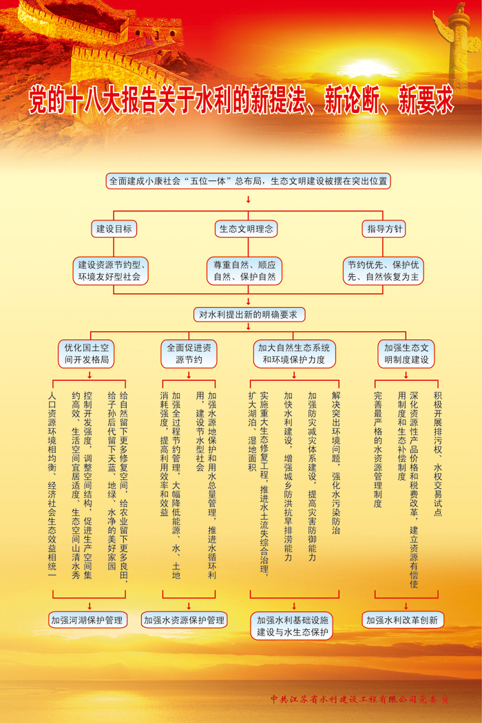 針對(duì)江蘇省水利改革發(fā)展和現(xiàn)代化建設(shè)的偉大實(shí)踐,宣傳牌圍繞2011年中央和省委一號(hào)文件的戰(zhàn)略部署,以奮力開啟江蘇水利現(xiàn)代化新征程為統(tǒng)攬,對(duì)水利現(xiàn)代化建設(shè)的指導(dǎo)思想、發(fā)展目標(biāo)、總體布局與主要任務(wù)、實(shí)施方案、保障措施等提出了具體要求,構(gòu)建出清晰明朗的發(fā)展目標(biāo)和實(shí)施規(guī)劃。