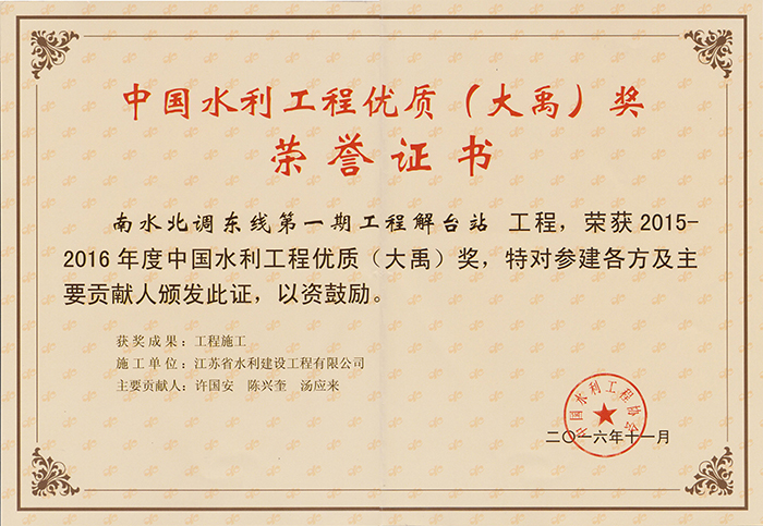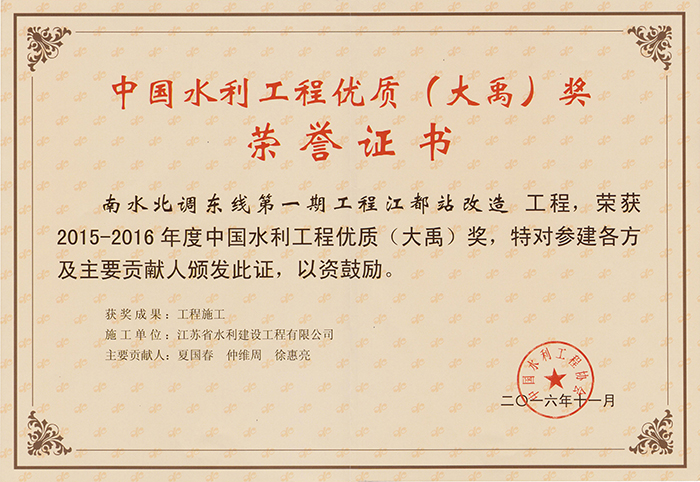 2015-2016年度中國水利工程優質(大禹)獎