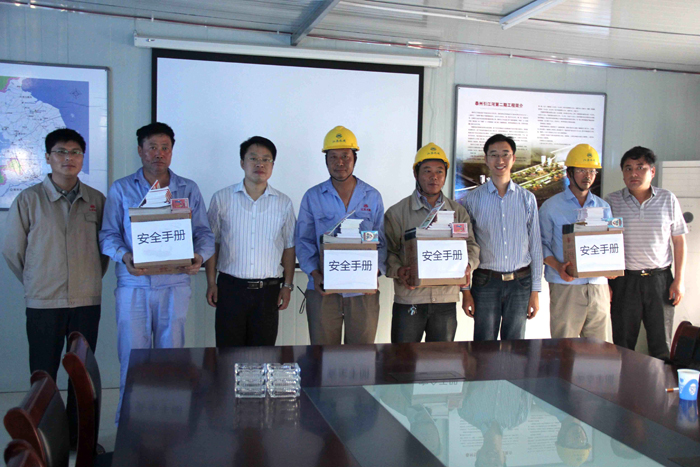 引江河二線船閘項目部為員工發(fā)放安全知識手冊