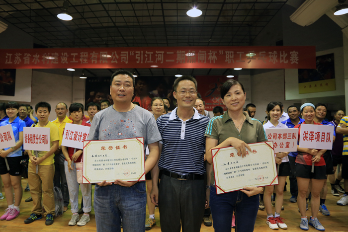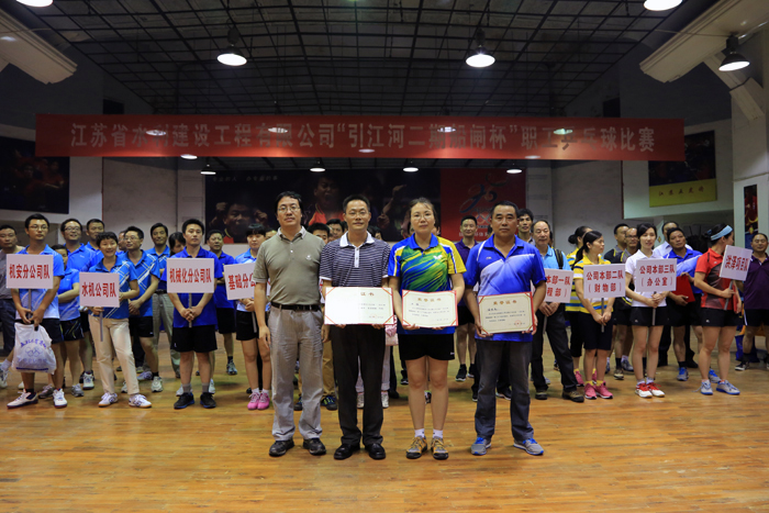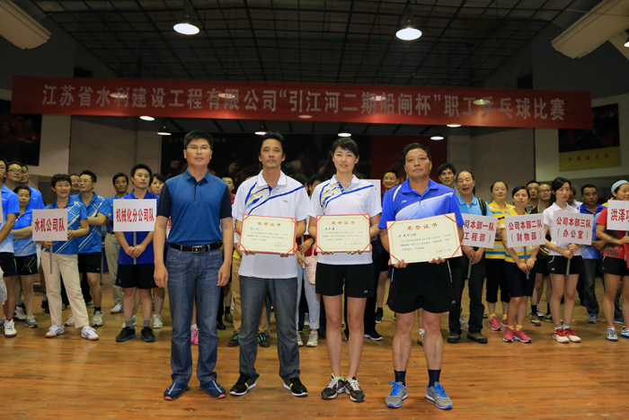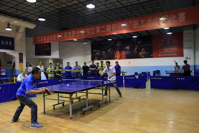 628,公司“引江河二期船閘杯”職工乒乓球比賽在揚州市漢勝乒乓球俱樂部拉開戰幕。公司各分子公司、項目部、部門共12支代表隊,近50名運動員參加比賽。