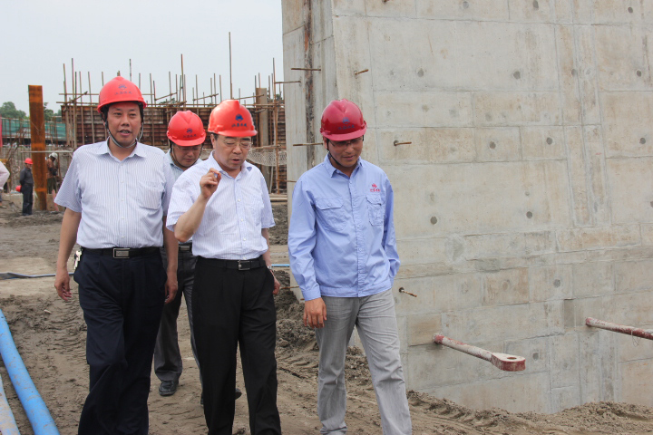 77下午,省人大常委會秘書長呂振霖來到我公司承建的泰州引江河二期工程二線船閘施工現場視察指導工作。省泰州引江河管理處主任張加雪、我公司副總經理、二線船閘項目經理顧明如等陪同。