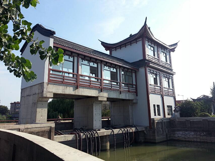 該工程又是邵伯湖大運河故道的北起點。改造后的新閘飛檐翹壁,古韻濃郁,現代水利功能建筑與古典建筑交相輝映。