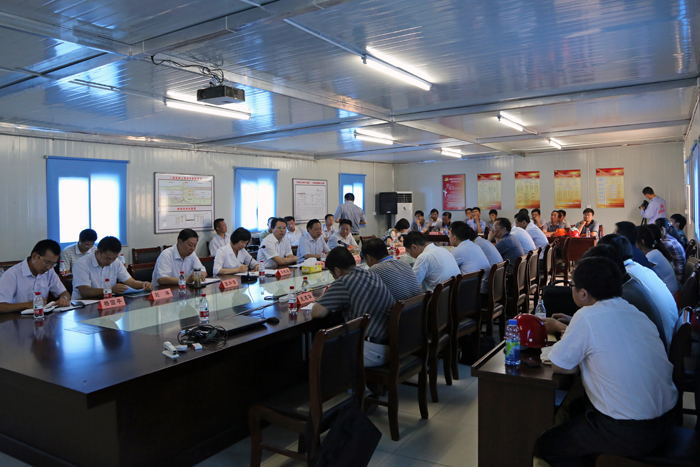 在我公司二線船閘工地會議室里,韓全林聽取了工程建設情況的匯報,對工程參建各方精心組織、科學安排,有力有序推進工程建設以及施工現場管理、黨支部活動、文明創建等各項工作給予充分肯定,并對全面推進工程建設管理提出希望。韓全林指出,引江河二期工程是省委、省政府確定的沿海大開發戰略中重點骨干水源工程,一要注重工程質量和安全生產,全力以赴強化施工質量管理,優化施工計劃,合理調配施工力量,科學安排施工作業,認真落實質量保證措施,牢固樹立“以人為本、安全發展”理念,確保施工安全和各項節點目標的實現。二要注重發揮黨員干部先鋒性,深入開展黨的群眾路線教育實踐活動,黨員干部要積極聽取施工各方意見,緊密聯系群眾、依靠群眾,調動廣大建設者的積極性。黨員干部要在工程建設中發揮先鋒模范作用,加強黨組織的凝聚力和戰斗力,引領引江河二期工程建設掀起新高潮。三要注重做好群眾工作,避免突發群體事件發生,要妥善處理好工程期間各類矛盾,依法維護好相關各方的切身利益。四要注重把工程一線作為人才培養基地,培養年輕一代水利建設人才,使工程一線成為優秀水利建設管理人才成長、儲備這地,爭取建一批工程,培養一批人才。五要注重提升科研水平。要加大科研創新研究力度,善于總結施工管理經驗,通過一個工程,研究出一批成果。