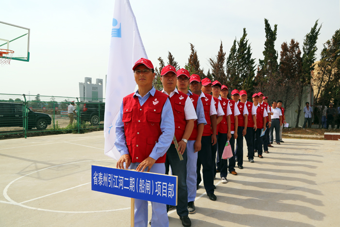 慰問活動開始前,由省泰州引江河管理處牽頭組織的“保護引江河”志愿者服務活動在我公司二線船閘項目部廣場召開了動員大會。我公司黨委副書記、工會主席姜啟生、副總經理、引江河二線船閘工程項目經理顧明如帶領項目部志愿者參加會議,并持續在一線工地開展志愿服務活動。
