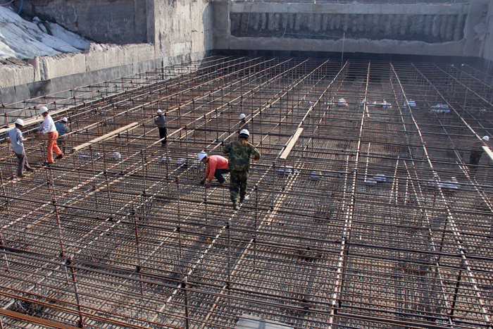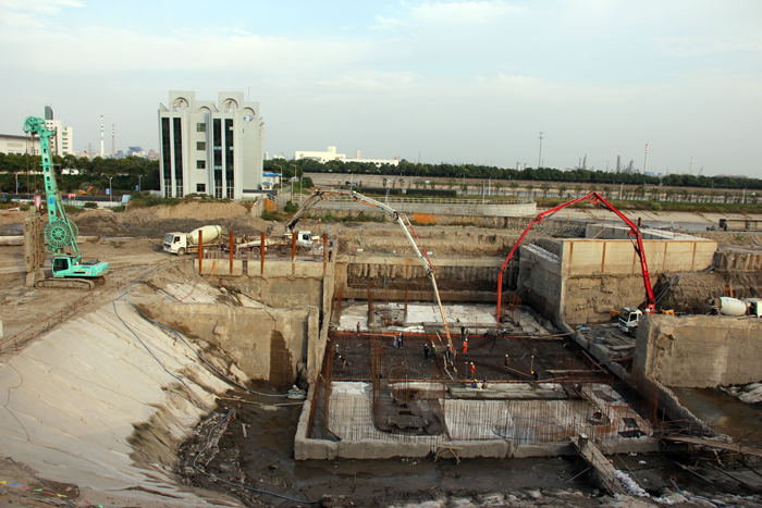引江河二線船閘工程上閘首底板澆筑是在兩個月前的83完成的。兩個多月來,項目部廣大員工按照預定計劃,穩扎穩打,步步為營,從基坑的降水、監測到16000方土方的開挖;從下閘首封底到160根樁頭鑿除和清理;從止水安裝和底板立模到近300噸的鋼筋制作、綁扎,建設者們一步一個腳印完成了各個節點施工任務,使得下閘首底板澆筑得以提前實施。下閘首底板的順利澆筑,為船閘上部結構施工打下堅定的基礎,向明年520日水下驗收目標又邁近了一步。