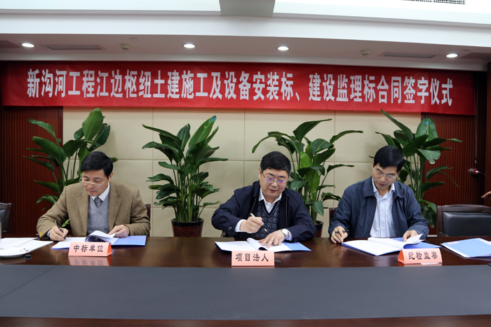 26日上午,省新溝河工程江邊樞紐建設(shè)處在南京舉行了江邊樞紐施工和監(jiān)理標(biāo)合同簽字儀式。省水利廳黨組成員、省水利工程建設(shè)局局長朱海生出席并講話。