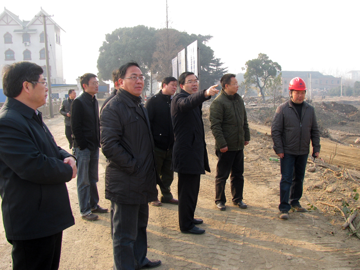 本站訊,11月26日,公司新近中標的新溝河延伸拓浚江邊樞紐工程在簽訂合同當日即組織人員進場。20多天來,項目部搭設了臨時辦公點,著手展開船閘基坑土方開挖、臨時變壓器安裝、拌和樓基礎施工、現場房屋搭設等施工前期工作。省水利廳黨組成員、省水利工程建設局局長朱海生、省太湖治理工程建設管理局黃良勇局長等領導多次到現場指導工作,與我公司總經理夏國春、副總經理、總工程師翟高明共同籌劃落實各項趕工措施。