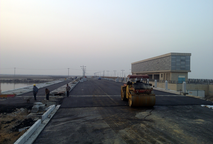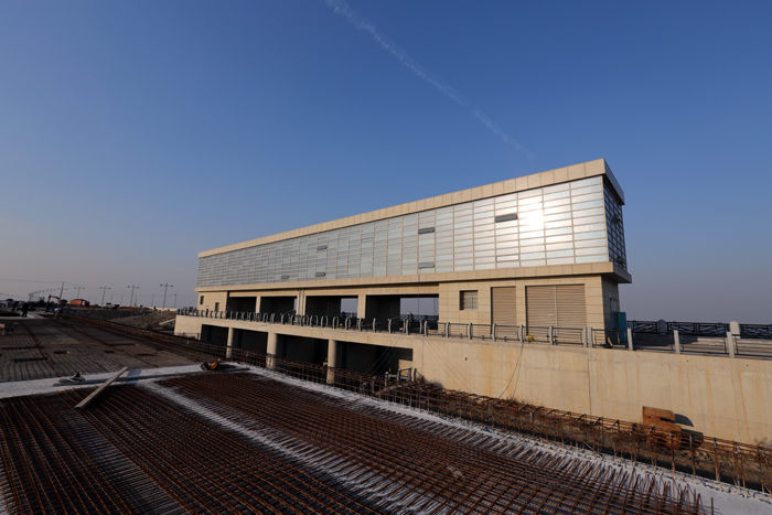 12月22日,新城閘交通橋橋面瀝青混凝土攤鋪結束,基本具備通車條件,順利實現了 “大干二百天,全力保通車”的工期目標。目前,工程進入了尾工階段,正抓緊施工人行道板安裝、大理石裝飾及路緣欄桿安裝等零星項目。