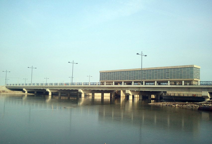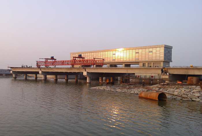 交通橋工程位于新城閘上游側,跨徑