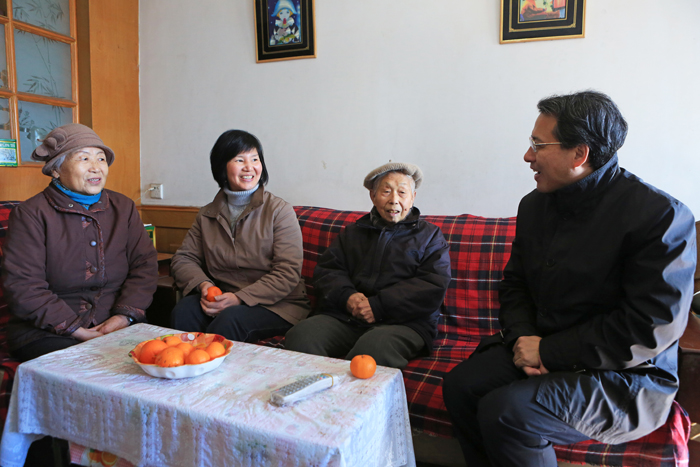 韓全林一行在夏國春總經理的陪同下,來到公司退休老領導朱道洪和省勞模丁開德家中,詳細了解他們的生活和身體情況,對老勞模、老同志為江蘇水利作出的貢獻表示感謝。他叮囑老同志們要注意保健,加強鍛煉,平和樂觀地安度晚年。