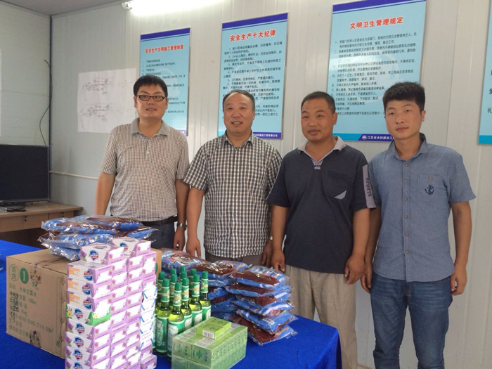 個在建工程項(xiàng)目,看望炎熱天氣堅守施工一線的公司員工,為他們送上了風(fēng)油精、花露水等防暑降溫用品。