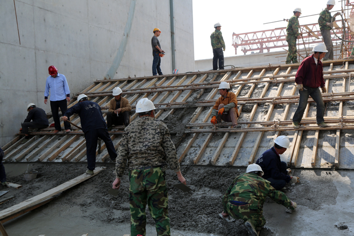 滾水堰施工回顧:邊立模、邊澆筑、邊拆模、邊收面