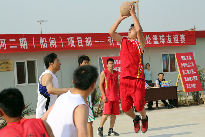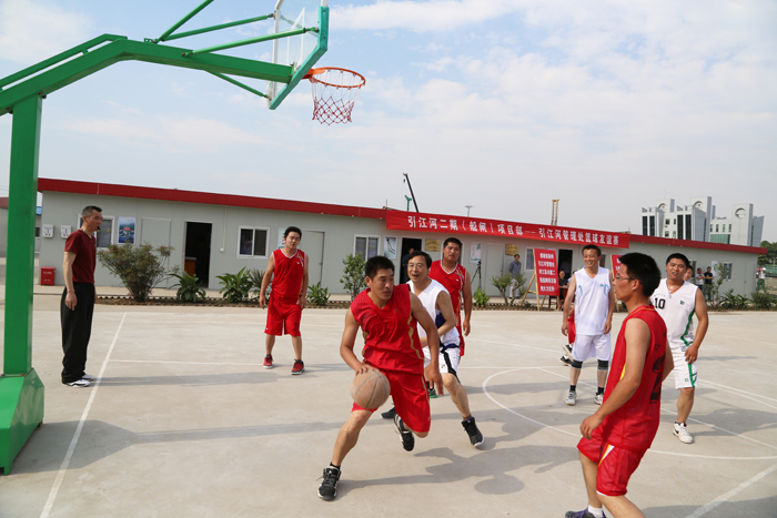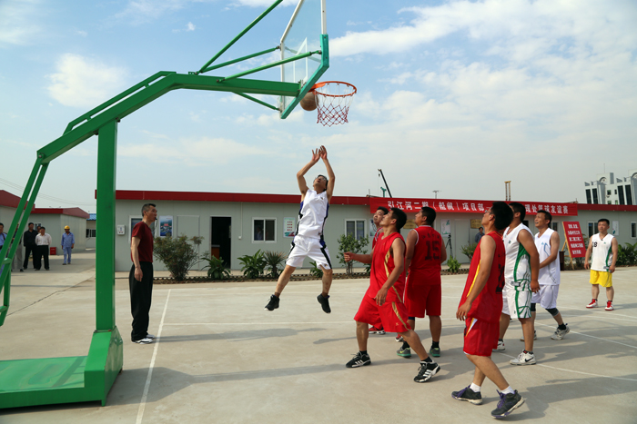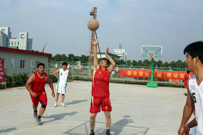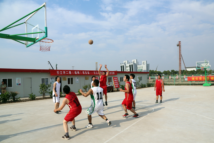 賽前雙方隊員都做了充分準備。賽場上隊員們投入到激烈的拼搶之中,外線傳球、內線配合、突破上籃等技術動作精彩紛呈。場外機械穿梭,施工現場一片繁忙景象;場內激情涌動,熱情洋溢,觀眾的加油聲一次次將比賽推向高潮。
